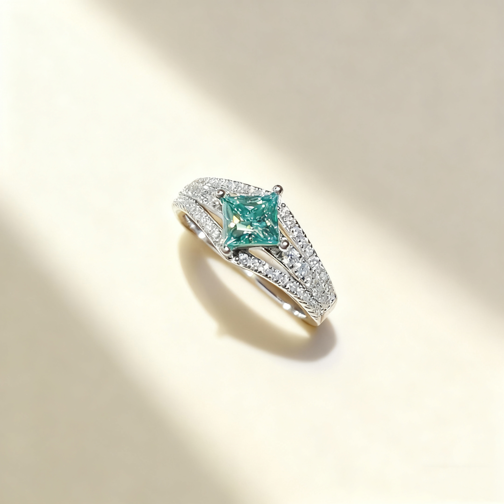 Green Princess-Cut Diamond Ring