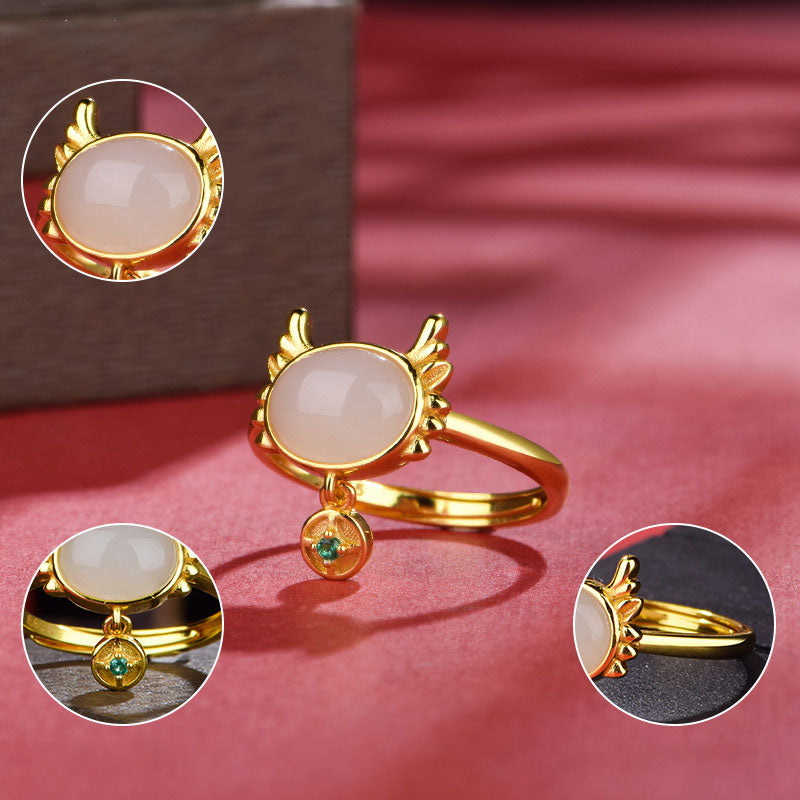 Cute Dragon Natural Emerald Jade Stone Ring