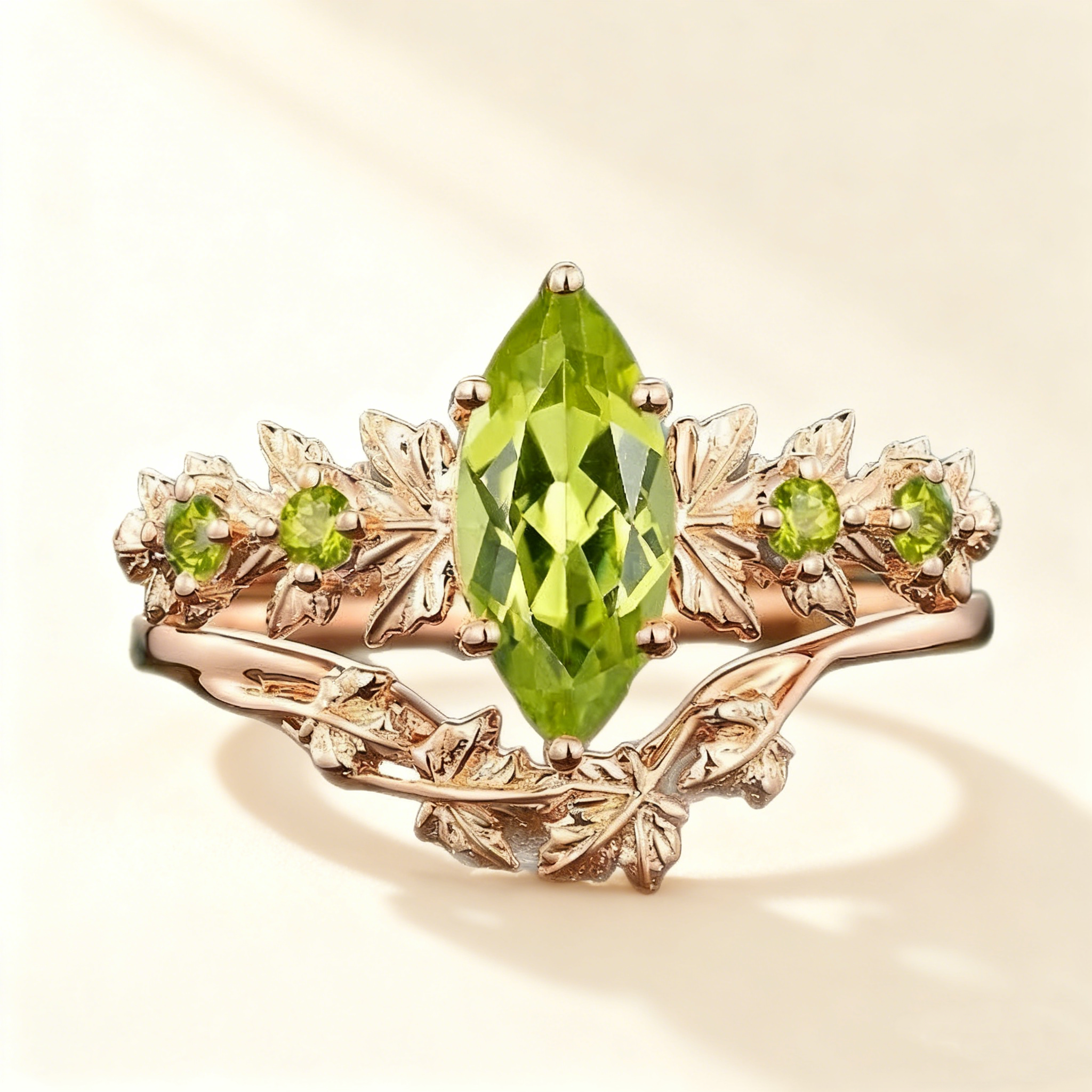 Marquise-Cut Green Gem Flower Ring Set