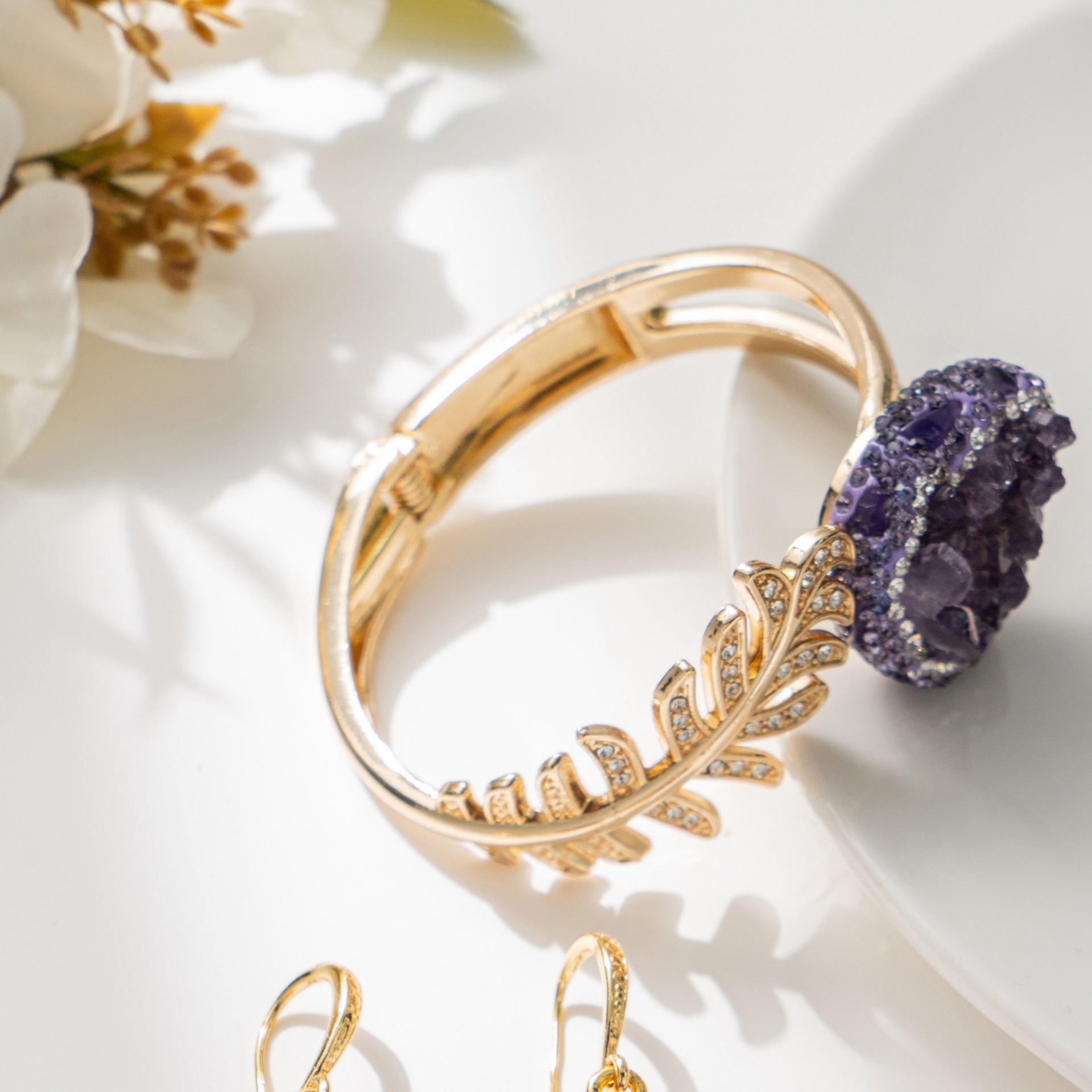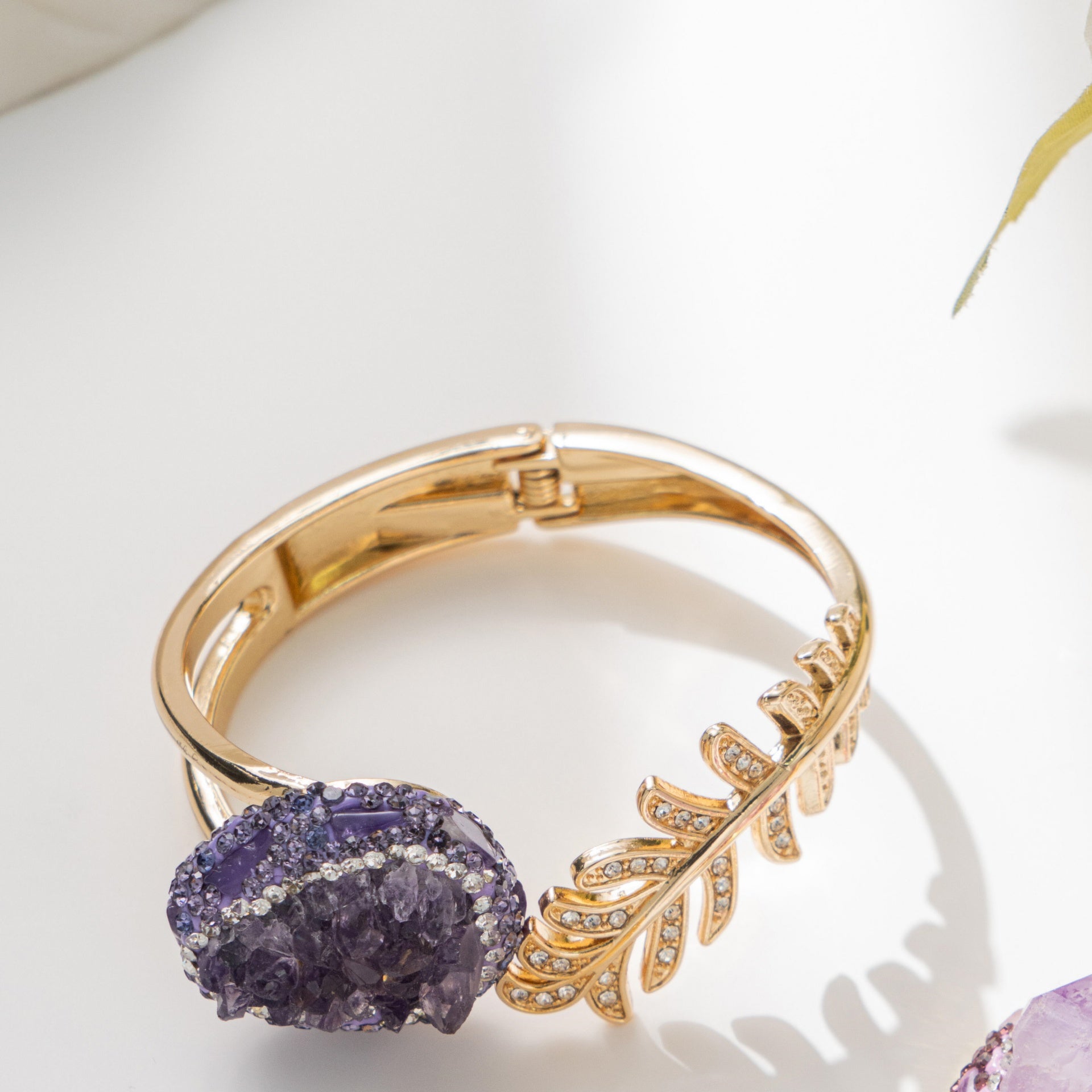 18K gold’s warm glow wraps around natural amethyst—a gem that holds quiet elegance and subtle strength.This bracelet turns your wrist into a tiny stage,where luxury meets daily life, and grace shines in every move.