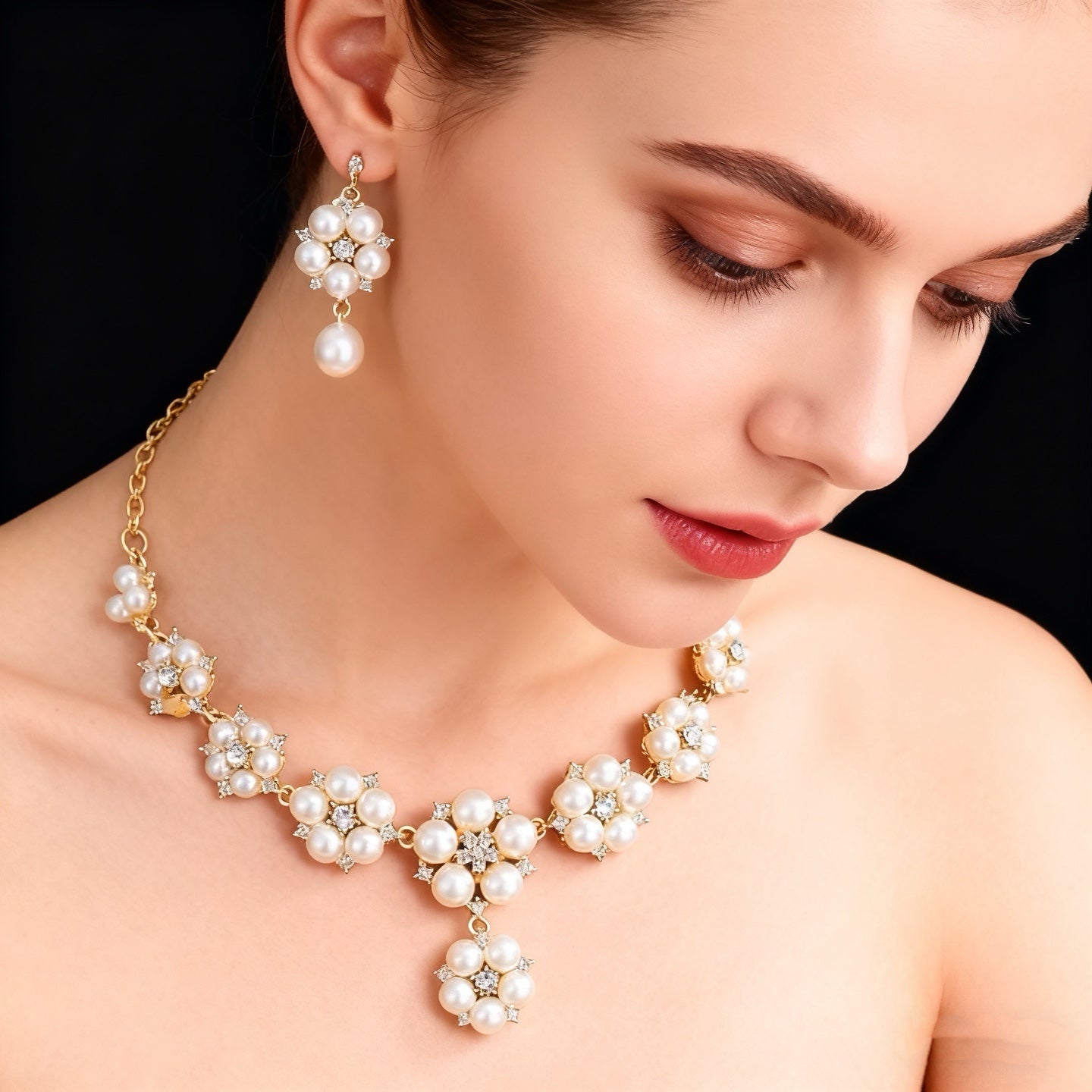 this set combines the softness of pearls with the sparkle of diamonds, creating a radiant and sophisticated accessory.
