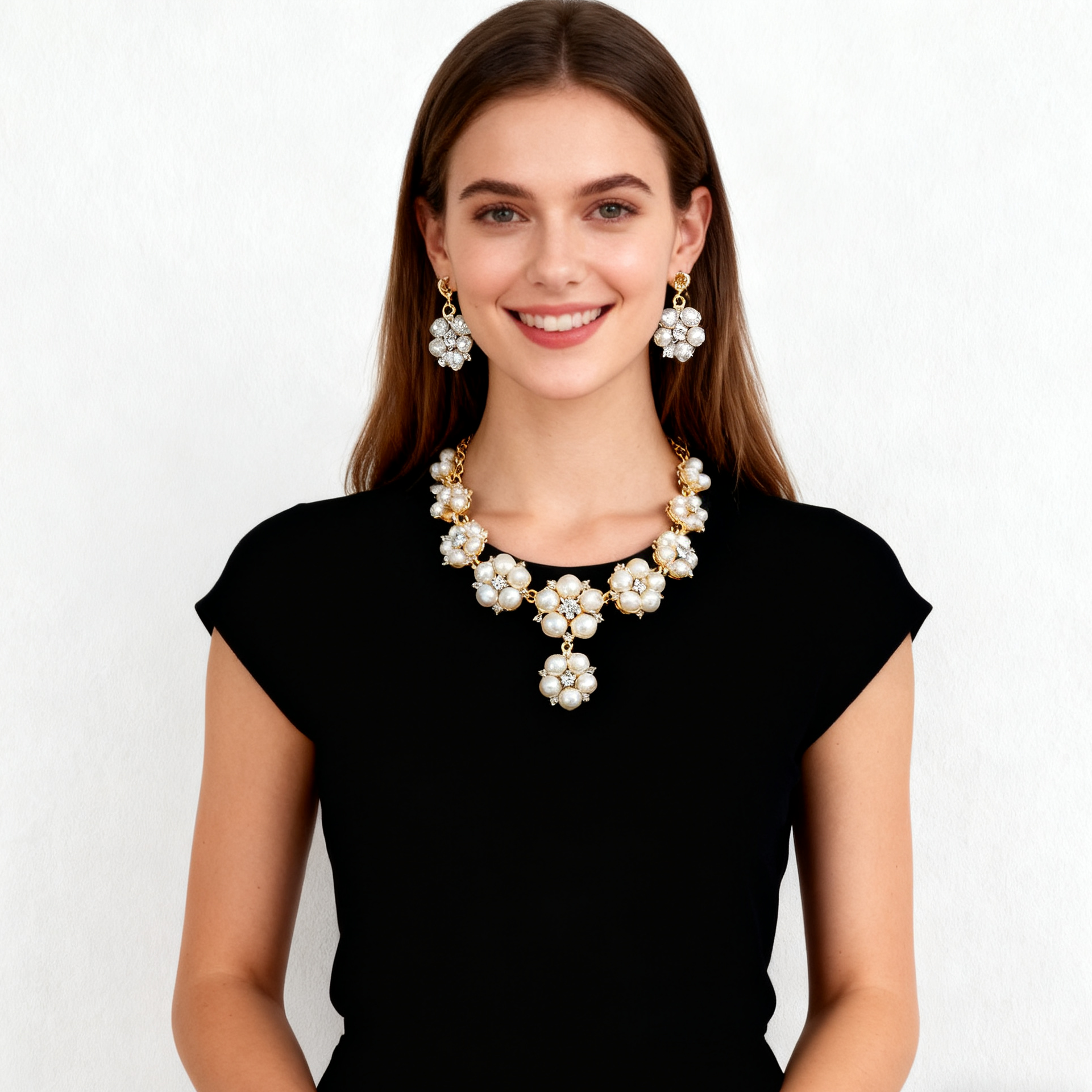 💎 Exquisite Floral Cluster Design — pearls and diamonds form a luxurious, intricate bloom