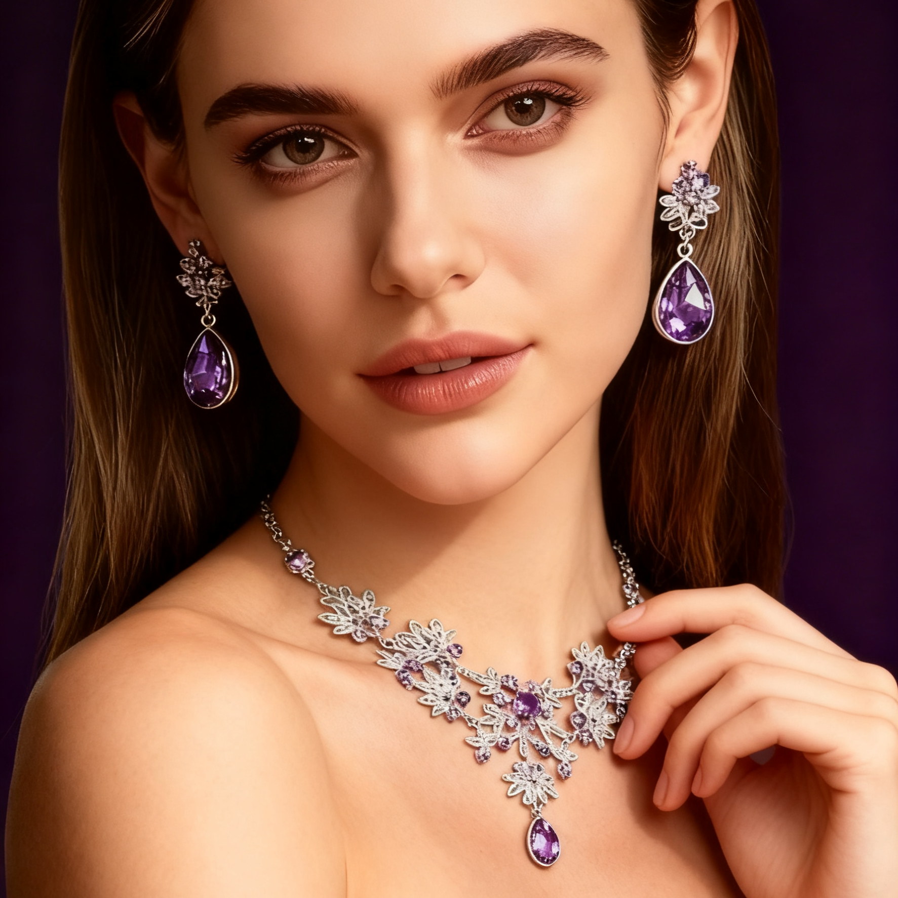 Inspired by the regal allure of amethyst, this set embodies elegance, femininity, and sophistication.