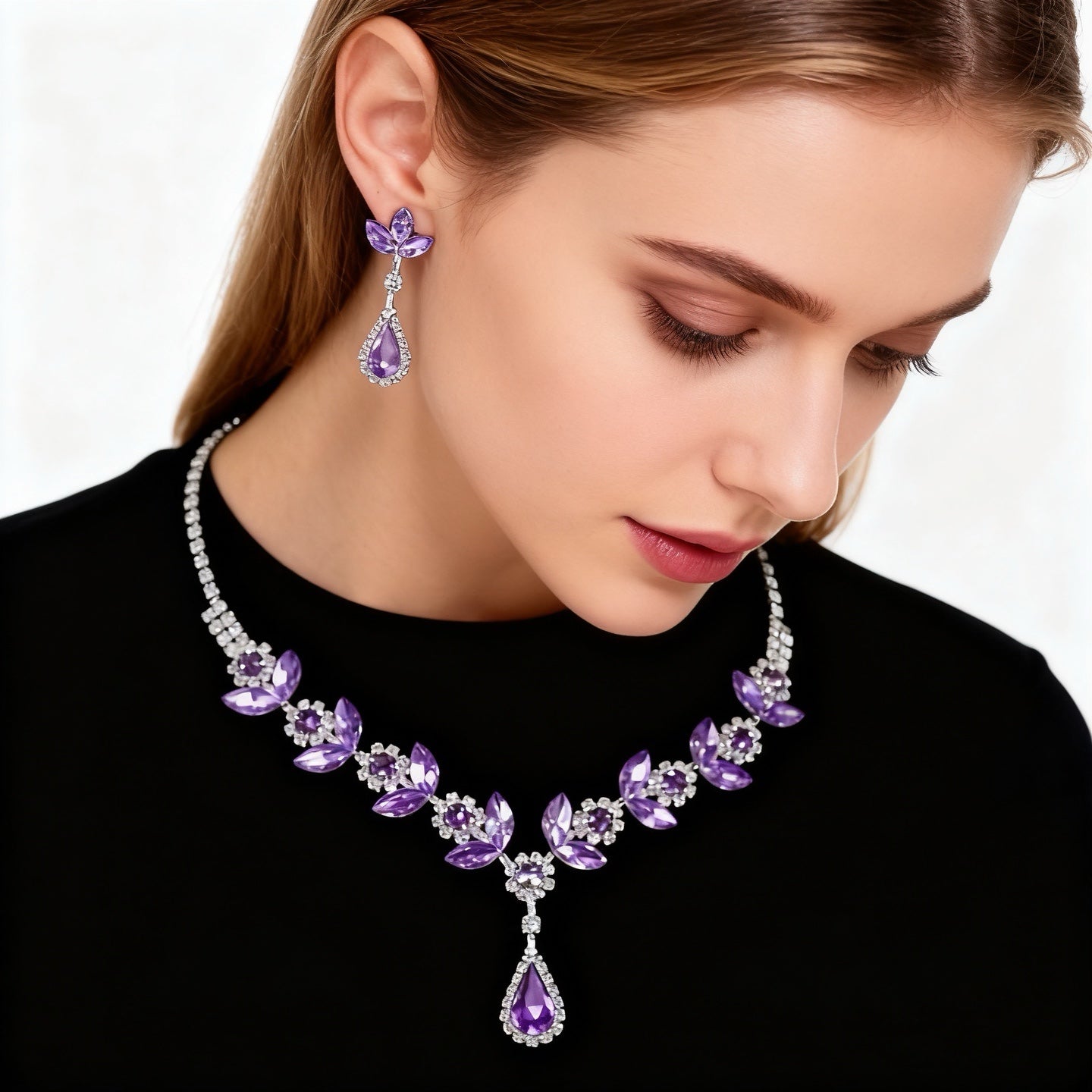 Let the brilliance of amethyst, diamonds, and crystals illuminate your elegance. ✨