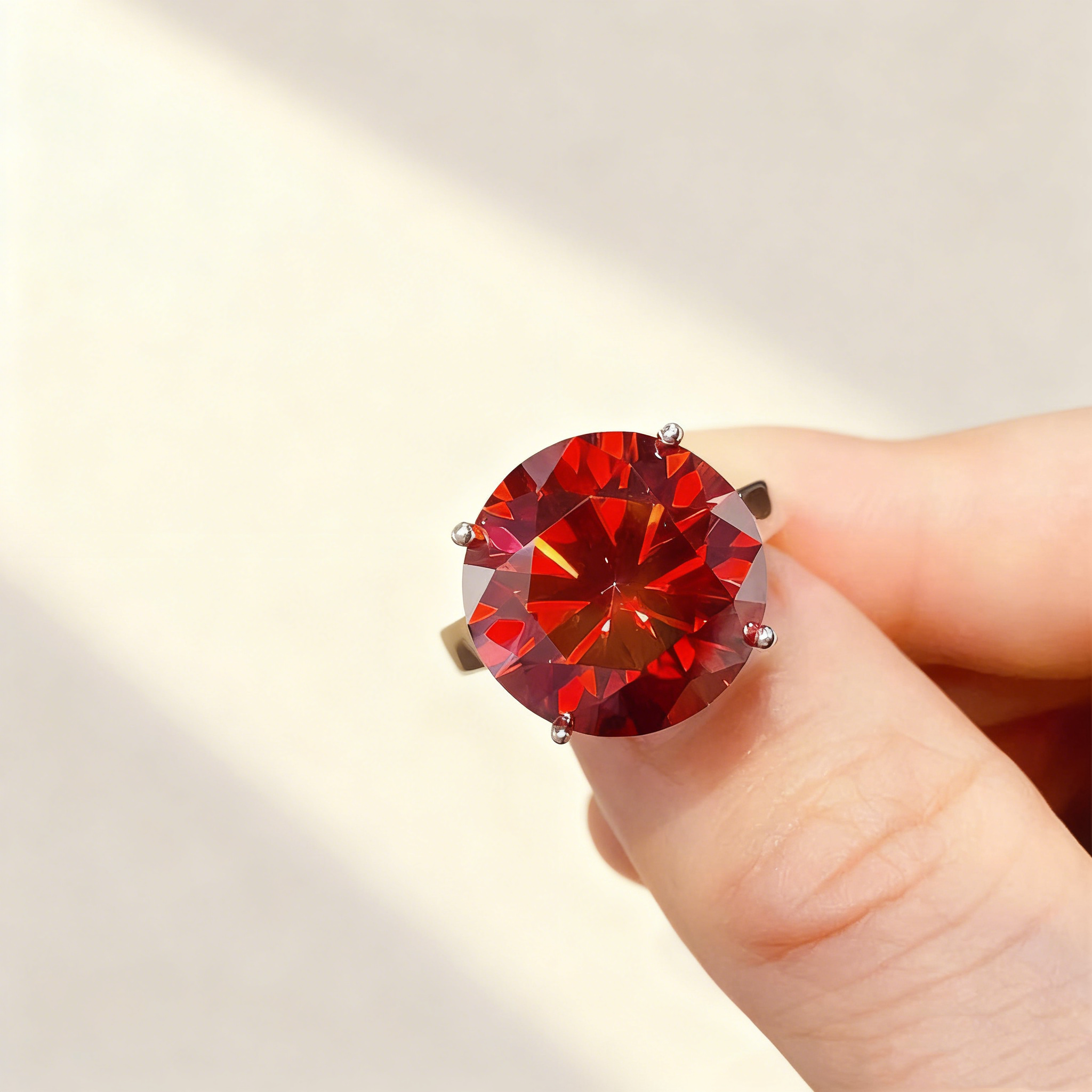 A stunning ring featuring Dove Blood Red Moissanite as the centerpiece, set in 925 sterling silver with 8-layer platinum plating. The Moissanite is of the highest quality, with D color and VVS1 clarity, expertly cut in an 8 Hearts & 8 Arrows pattern, 3EX cut for maximum brilliance and sparkle. Available in various carat sizes, this luxurious piece is perfect for adding sophistication to any occasion.