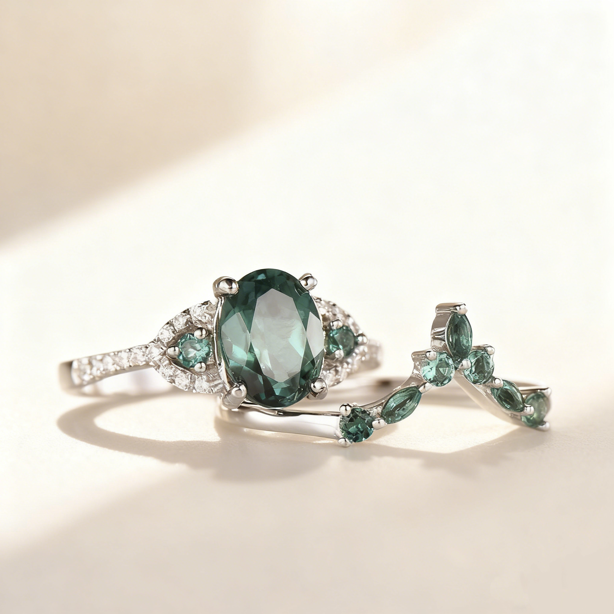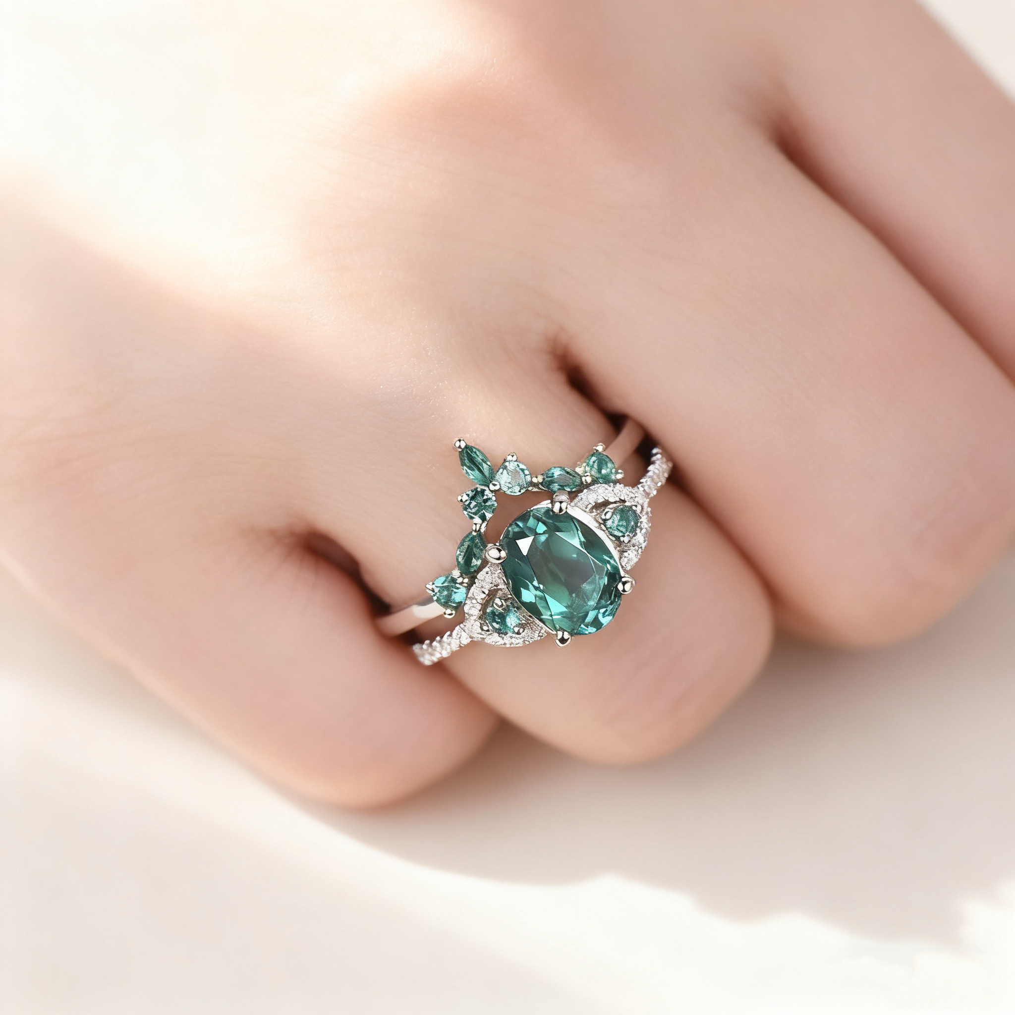 - Main Stone: Oval Green Cubic Zirconia