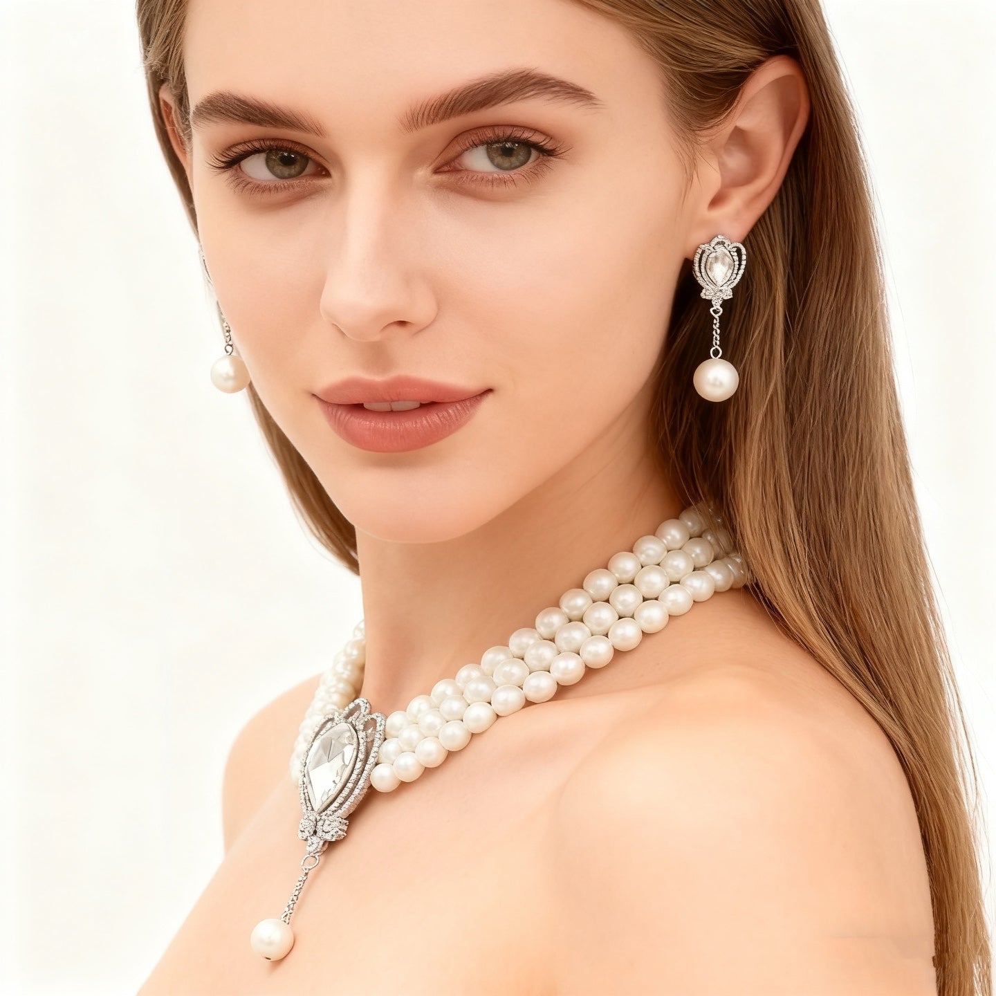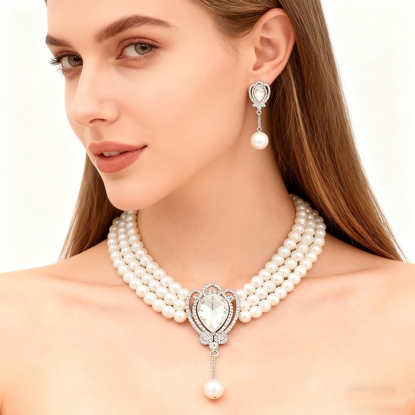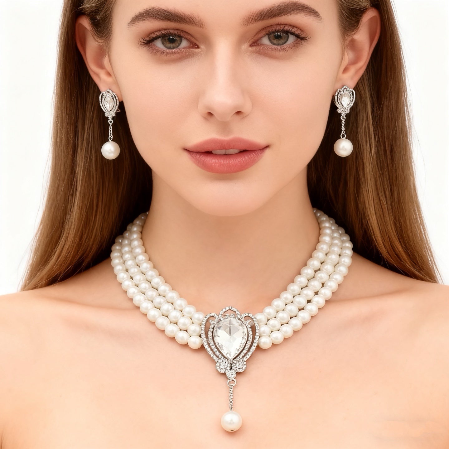 💎 Three-Layer Necklace Design — cascading pearls and crystals create depth, movement, and sophistication